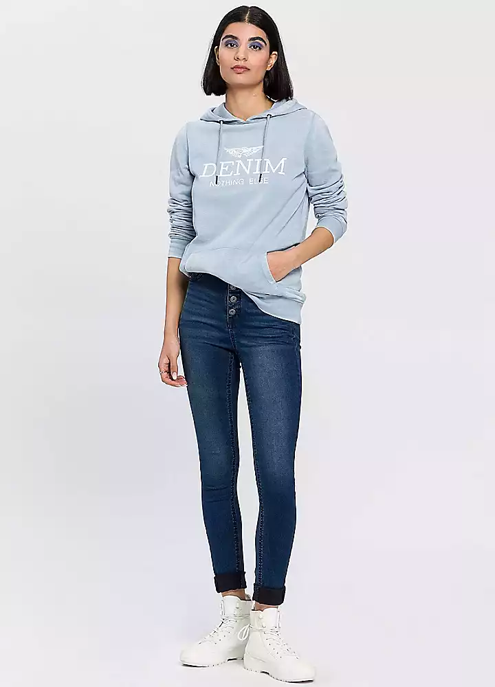 Ultra skinny-fit jeans with a high waist, stylish button placket and fake pockets on the front. Made from a comfortable stretch denim in an ankle length cut.