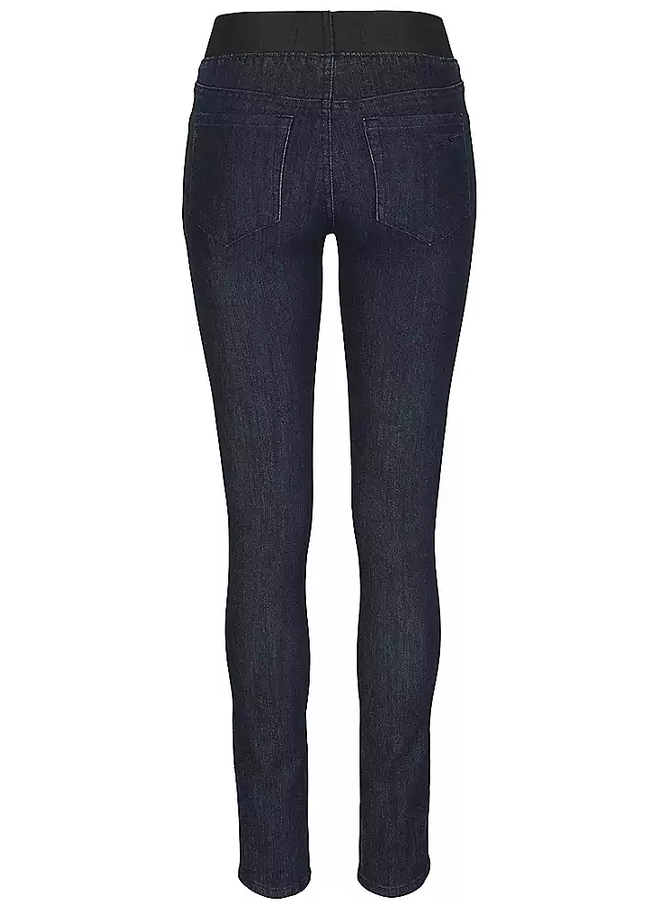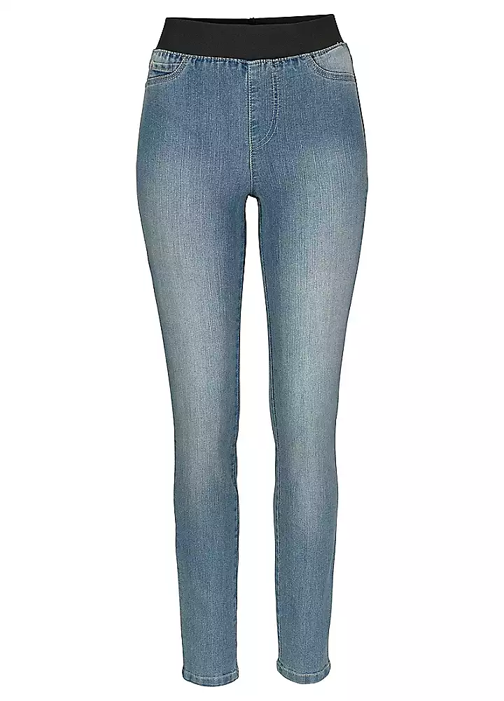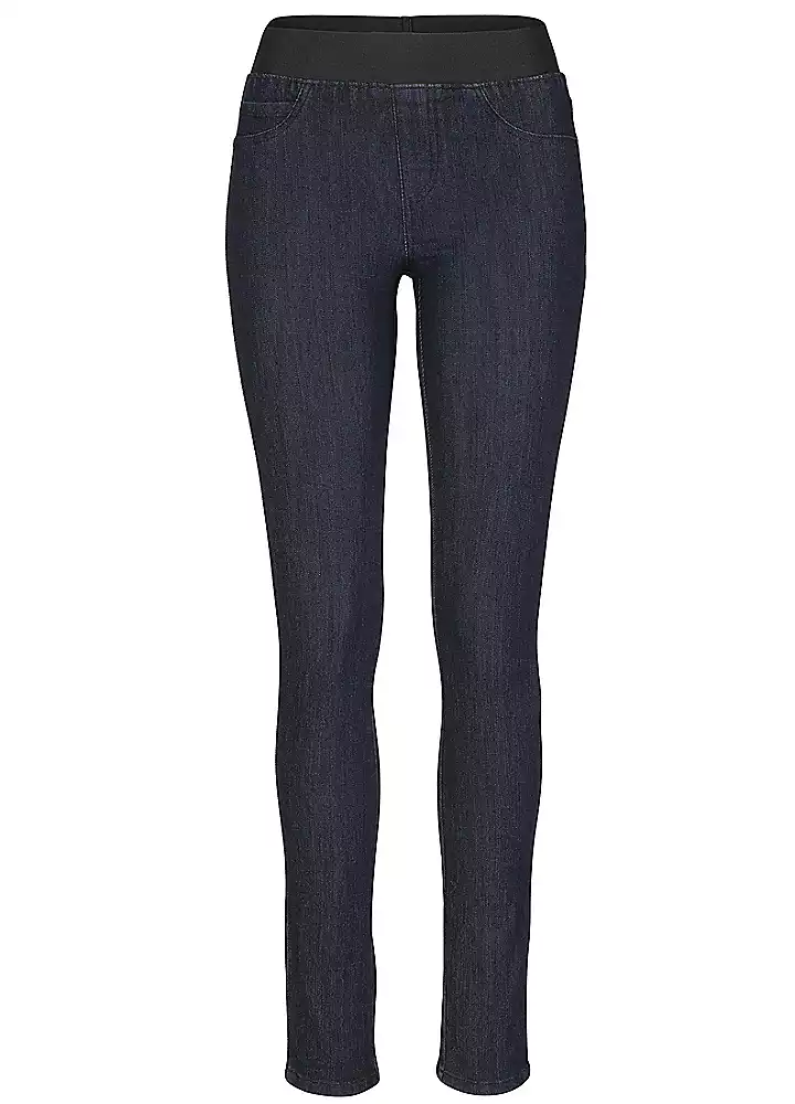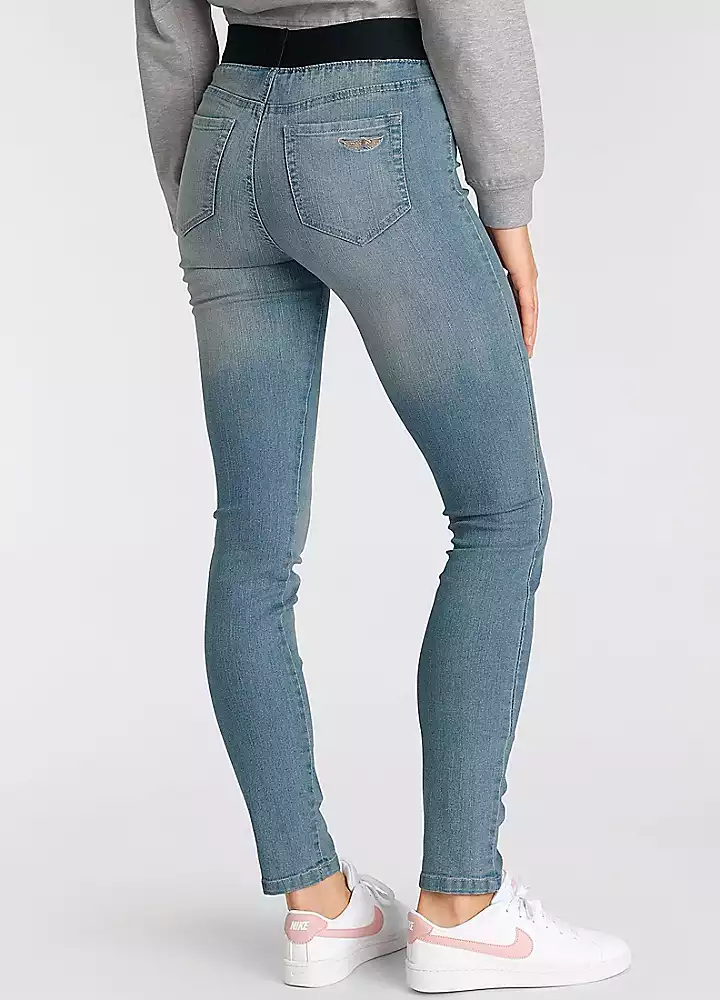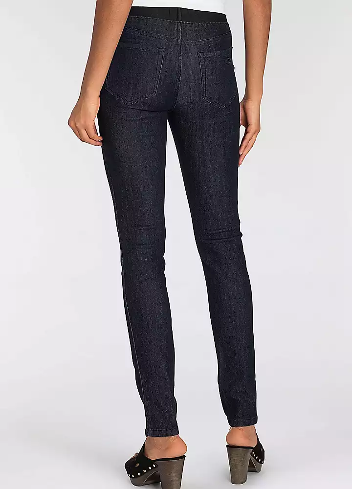 A pair of super skinny, denim jeggings made with a slightly lower rise. Featuring an elasticated waistband and made from stretch denim for a comfortable fit. Featuring a small label on the back pocket for a stylish little touch.