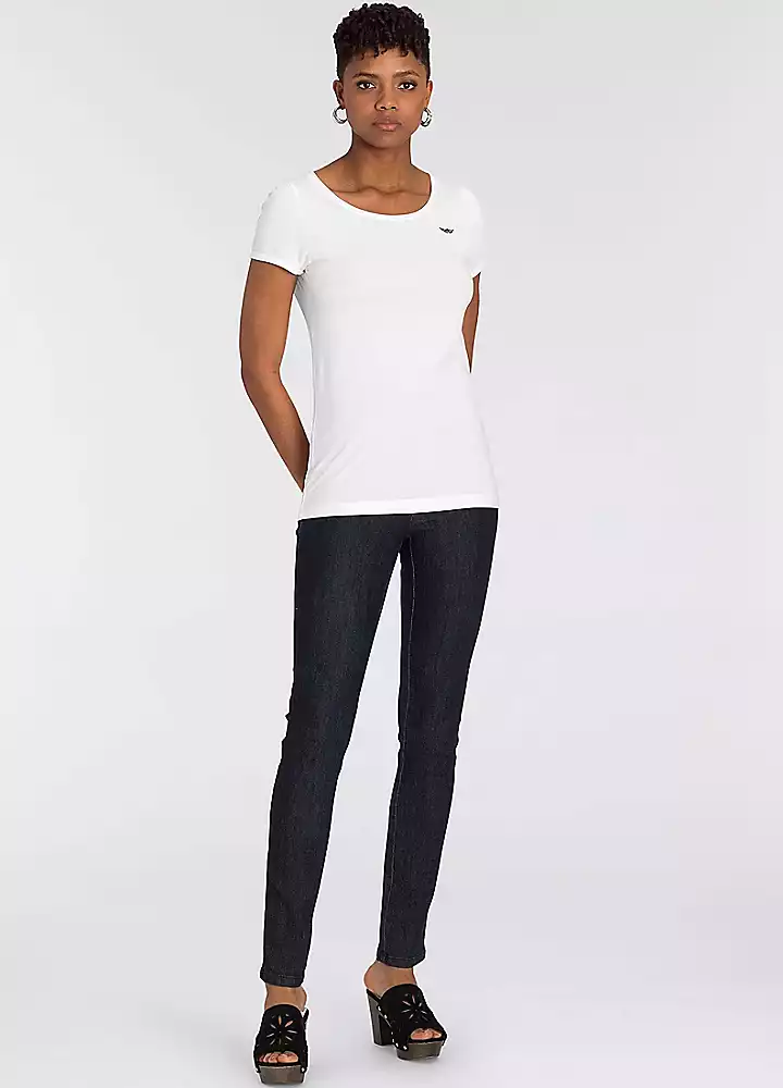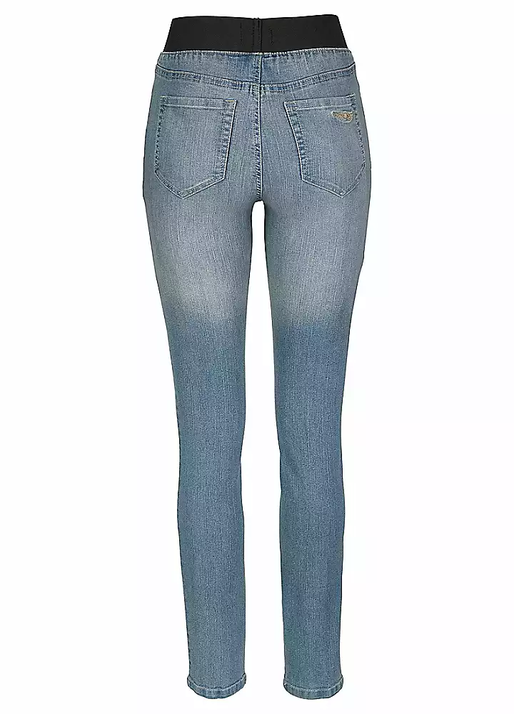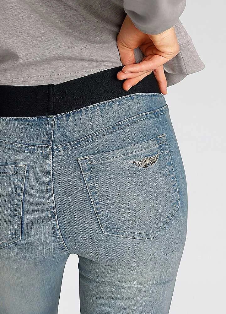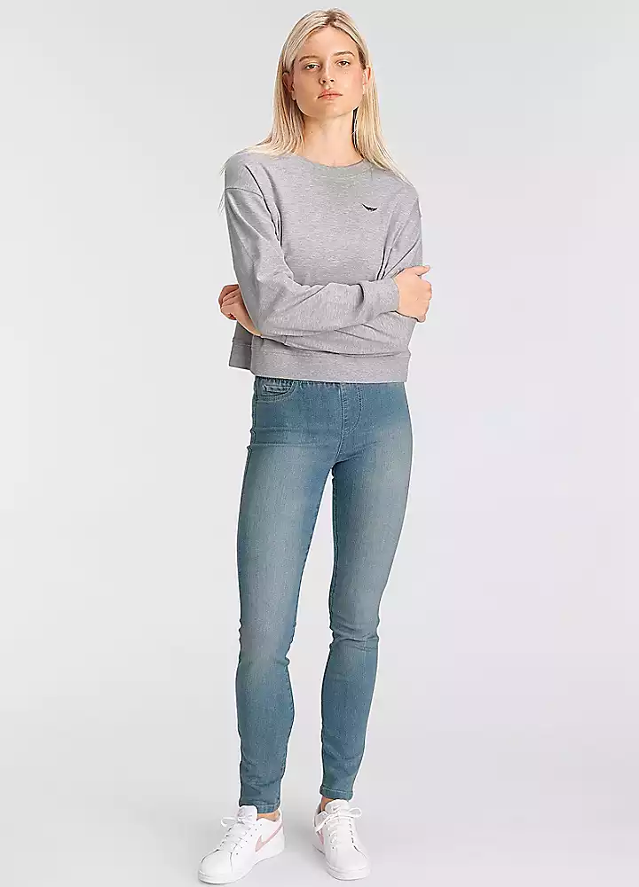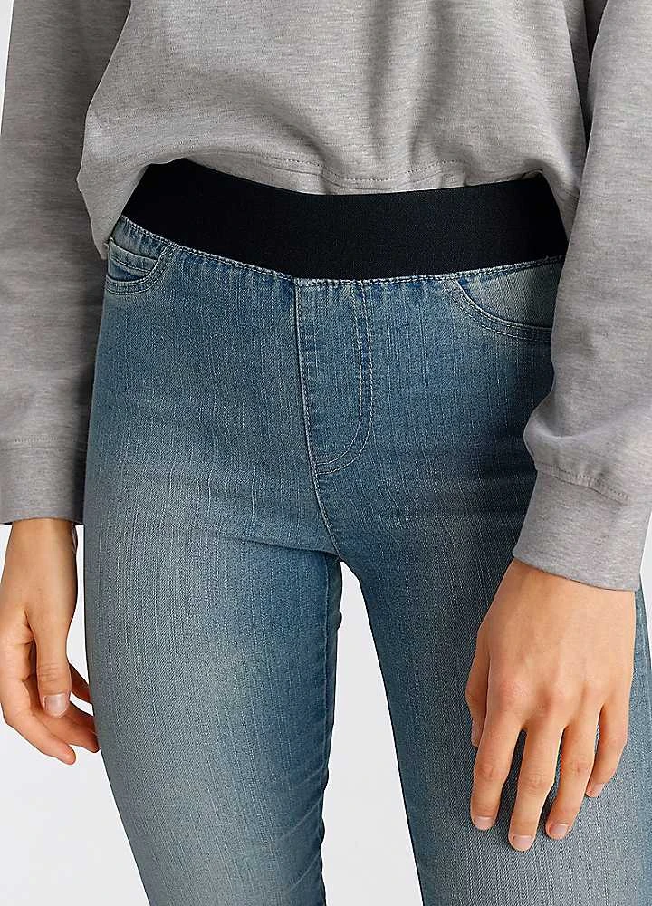 A pair of super skinny, denim jeggings made with a slightly lower rise. Featuring an elasticated waistband and made from stretch denim for a comfortable fit. Featuring a small label on the back pocket for a stylish little touch.