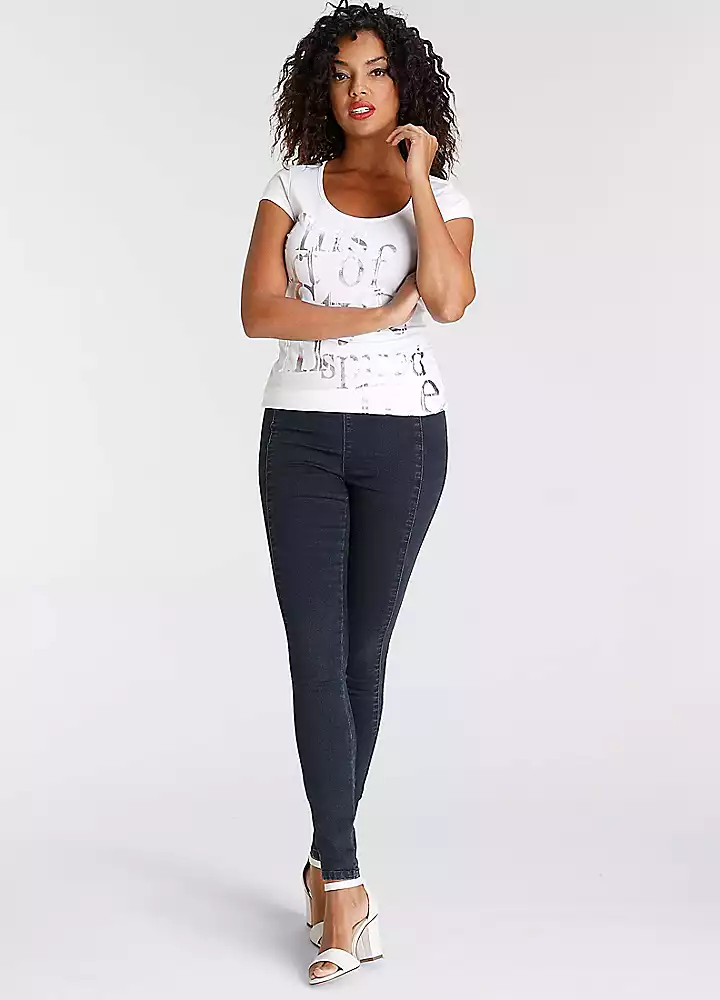 Skinny jeggings from Arizona with a very tight leg shape. High waisted, they’re easy-care thanks to the hard-wearing and robust denim fabric.