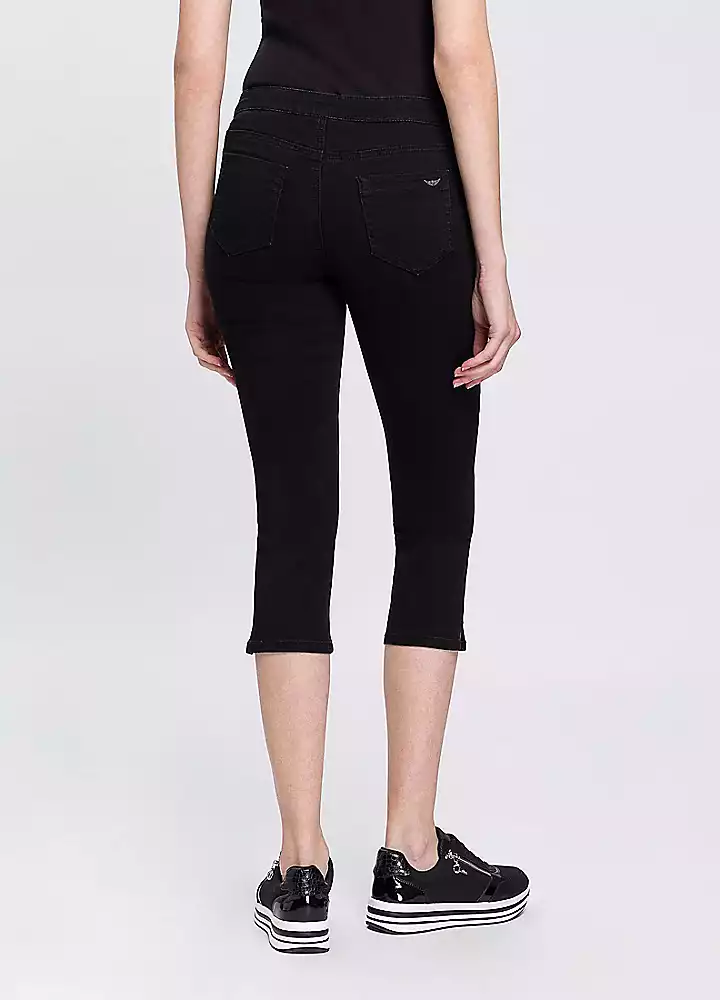 Super-stretch cropped denim jeans which feel like a second skin! They come in a three-quarter length with a regular height, 5 pockets, plus zip fastening with top metal button .