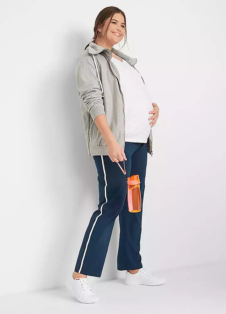 Two pairs of cotton joggers with side piping and a high jersey waistband for more support around your changing shape.