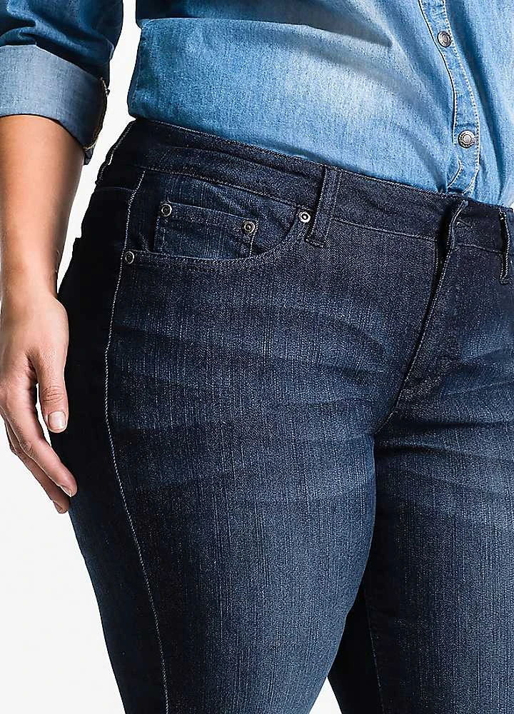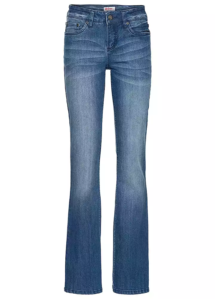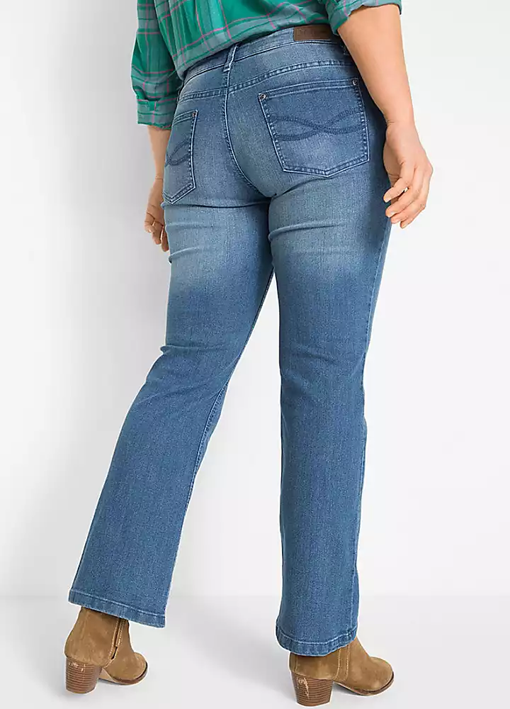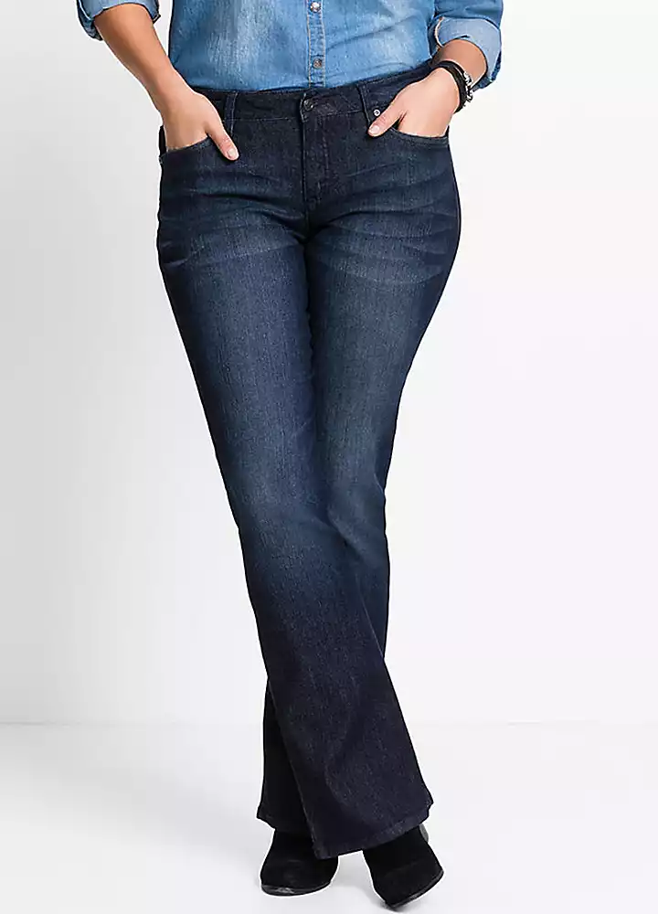 These stretchy jeans have a classic 5 pocket design and a bootcut leg.