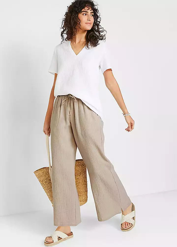 Bonprix Wide Leg Cotton Palazzo Trousers