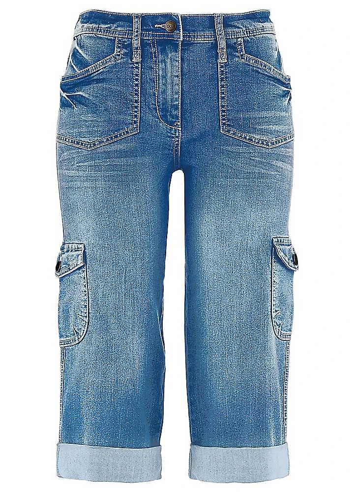 Super cool, these cropped jeans boast cargo pockets at the thighs, side pockets and two more cargo pockets at the back. In a soft stretch denim that feels great against the skin, simply team these jeans with a t-shirt or blouse for a casual look.