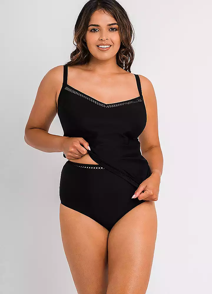 Plunging Tankini top, uses recycled swim fabrics with XTRA LIFE™ Lycra®, helping to prolong the life and durability of your swimwear. In combination with a stretch trim insert in a criss-cross design that enhances the style lines for a flattering effect. Wear the Tankini top multiple ways either cross back, straight-over-shoulder or halter neck.
