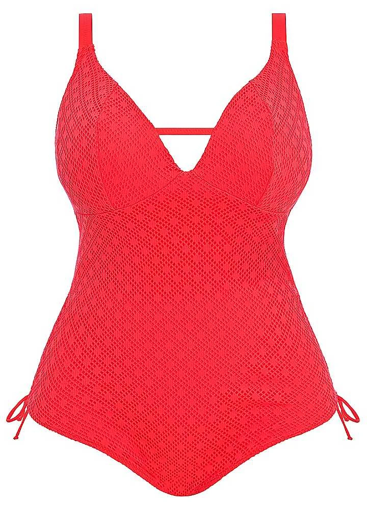 Crafted from a macrame-look fabric, the non wired swimsuit is bra sized for a more tailored fit. Less structured shape without moulded cups, for ease of wear and a lighter look. A powernet panel under the inner cups is connected to wide underband elastic, which is attached to the suit at the side seam, to provide good anchorage. Features a low plunging neckline with narrow connecting strapping detail. Clasp fastening at back with low scoop keyhole back, for ease of dressing. Adjustable at side for a choice of coverage. Cut from crochet fabric with full opaque liner for modesty. Adjustable length shoulder straps.