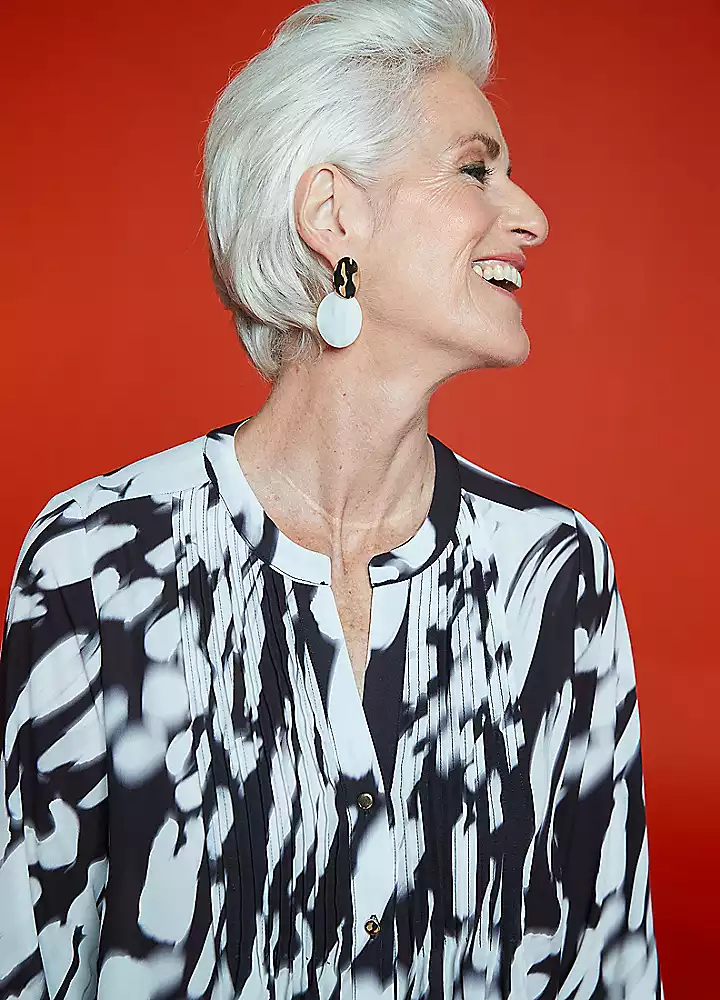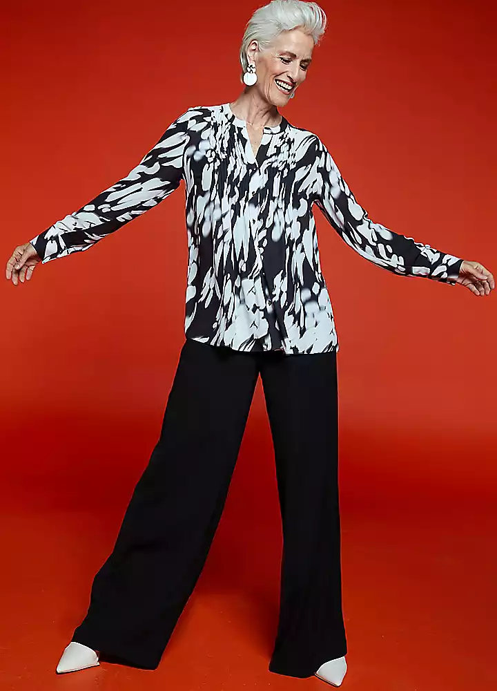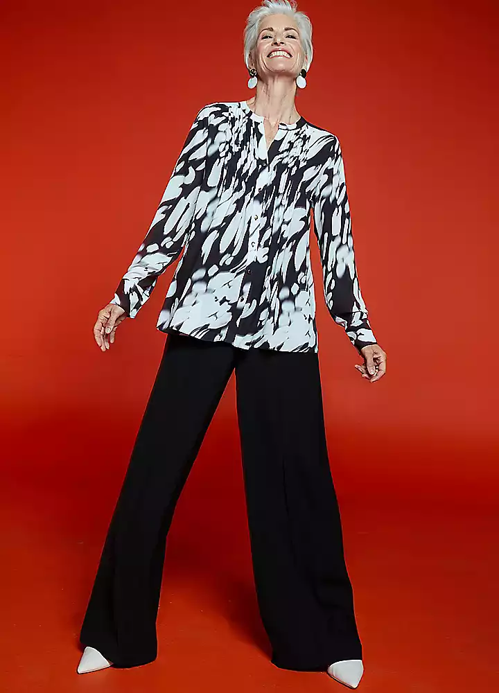 Freemans Black and white printed Pintuck Blouse Features: