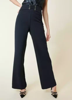 This flattering style will ensure you look elegant on any occasion. In a wide leg style with side zip detail and a lovely corset detailing the front waistband.