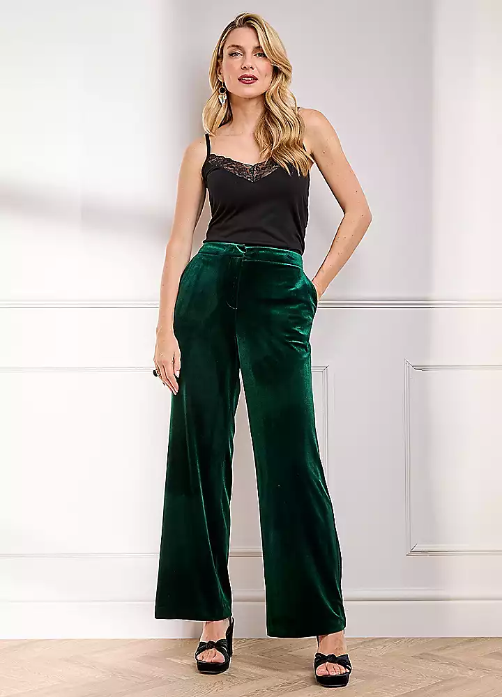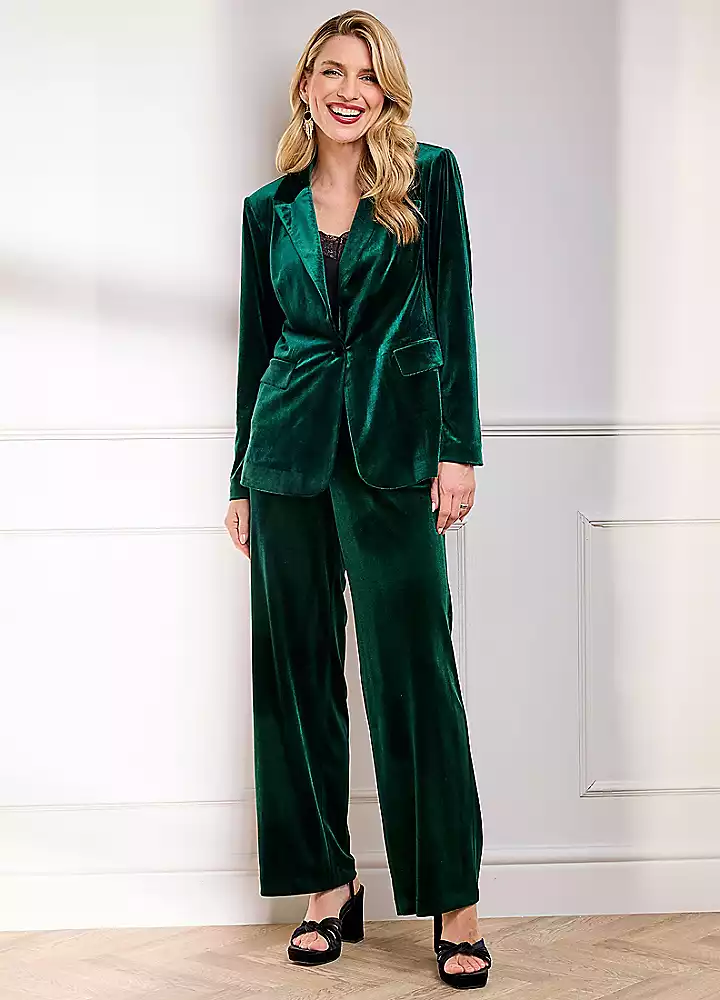 Elevate your style with these fabulous velvet trousers in a stunning shade of green. Complete the look by pairing them with the matching blazer and your favourite heels for a chic ensemble.