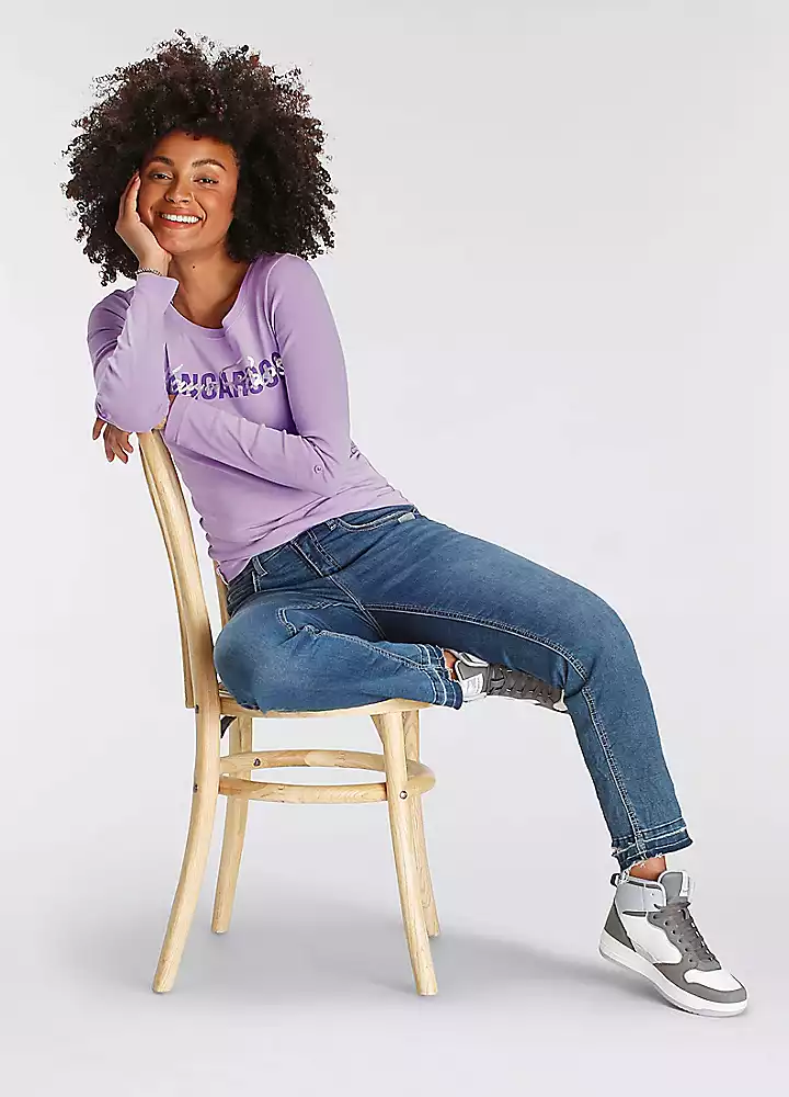 A versatile long sleeve top in a figure-hugging cut that allows you to create casual and stylish looks. Due to the high stretchability of the rib material, this top is particularly comfortable while contrasting side seams and a logo print complete the look.