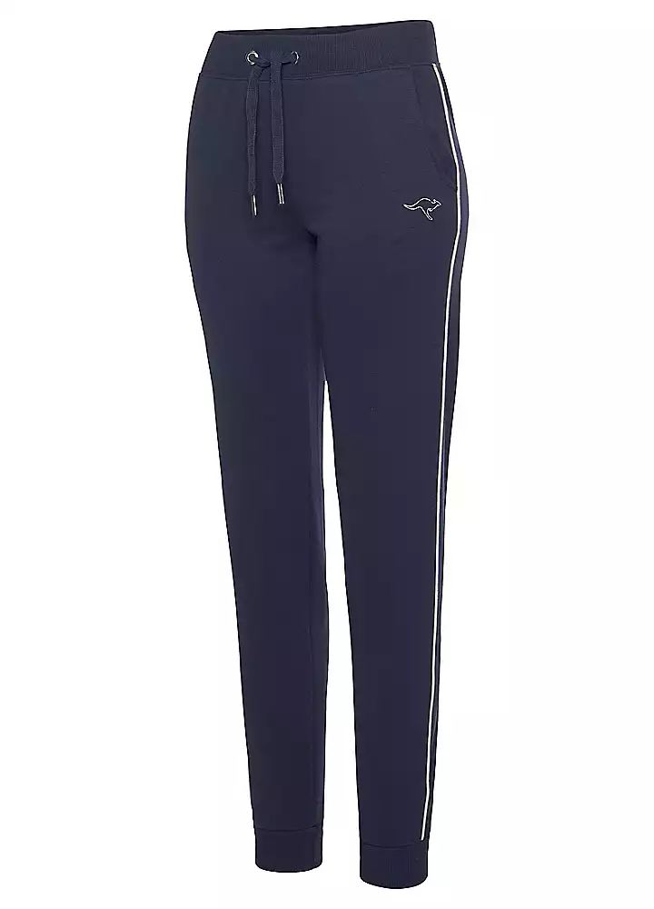 These sweat pants boast contrasting stripes and logo print. With side pockets, comfortable ankle cuffs and a drawstring waist.