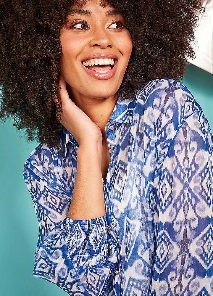 This beautiful floaty feminine blouse will give a pop of colour and interest to any outfit. Featuring an exclusive to Love by Mark Heyes print this is sure to turn heads.