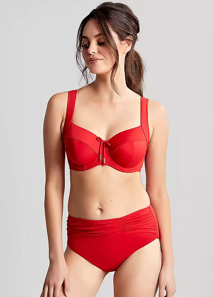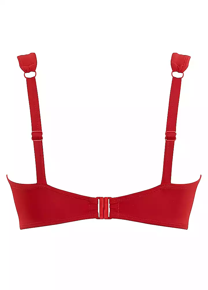 The underwired balconette bikini top is a true holiday essential from the Anya Riva swim collection and comes in a stylish fiery colour shade, the three-piece non-padded full cup bra provides more coverage and security. Built up front straps to provide a comfortable fit on the shoulders and centre front bow with gold branded beads for a functional everyday style.