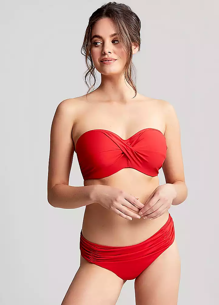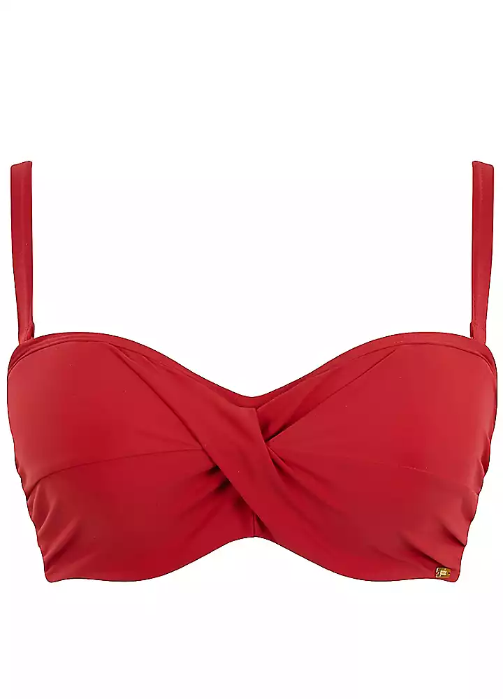 Fiery Anya Riva twists bandeau bikini top adds a touch of chic to your swimwear. The modern, glamorous piece is inspired by flattering gather details and luxury finishes and the padded cut and sew foam bandeau style offers exceptional support and uplift. The classic twist bandeau design is a holiday essential and comes with detachable straps.