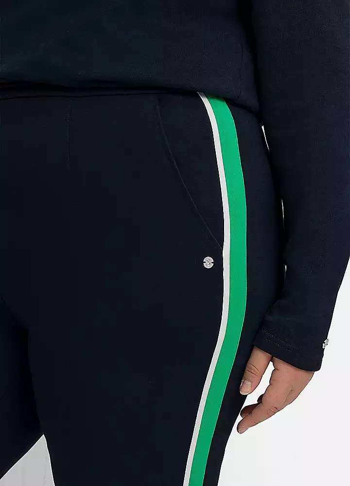 These joggers are very comfortable to wear thanks to the elastic drawstring waistband, and the eye-catching two-tone gallon stripes add a fashionable twist. Practical pockets complete the look. The side stripes stretch the silhouette optically. The jersey quality in the viscose mix falls beautifully and is very comfortable to wear thanks to the stretch content.