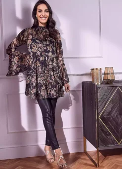 This blouse definitely has the wow factor. This floral print blouse comes with metallic thread detail, fluted sleeves and tiering detail to the body. Looks great worn with our leather trousers. Team with your own cami.